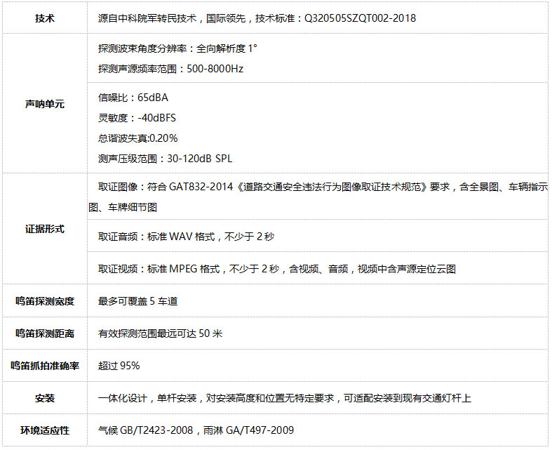 清聽聲學研發生產的違法鳴笛炸街抓拍系統已通過公安部權威檢測認證,并協助中科院聲學所制定行業規范。清聽聲學違法鳴笛炸街抓拍系統以國際先進的聲源定位技術為核心,以清聽聲學創新研發的波達方向定位技術、波束形成技術、自動噪音抑制技術為基礎,對現有道路交通執法系統進行全面科技化、數字化升級,形成從數據采集、存儲、分析到執法提升的“綠色交通”閉環,提供完整的端 (采集終端)到端(執行終端)的智能應用解決方案。