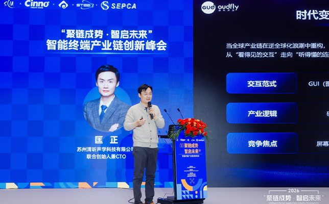 3月12日-13日,在AWE展會同期舉辦的2026中國智能終端供應鏈產業發展峰會上,清聽聲學CTO匡正博士應邀發表主題演講《聲學創新:從“聽得清” 到“聽得懂”的智能終端聲學革命》,向與會嘉賓分享清聽聲學在音頻用戶界面(AUI)時代的前瞻布局與技術突破。在2026中國智能終端供應鏈產業發展峰會演講中,匡正博士詳盡介