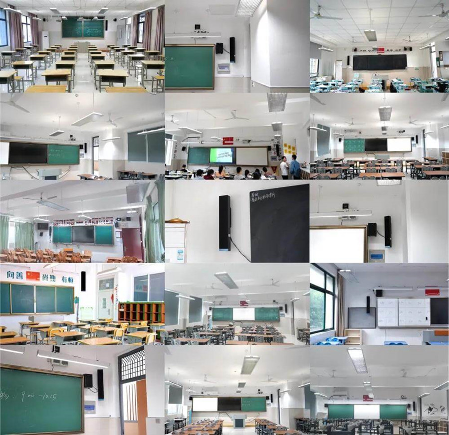 在聲環(huán)境改善升級(jí)部分,教學(xué)擴(kuò)聲系統(tǒng)引入“教室均衡擴(kuò)聲”理念,通過專業(yè)聲場(chǎng)仿真設(shè)計(jì),在教室內(nèi)特定點(diǎn)位部署教學(xué)級(jí)專業(yè)擴(kuò)聲揚(yáng)聲器,基于設(shè)備自帶的空間波束成形技術(shù)與高性能轉(zhuǎn)向控制語(yǔ)音算法,實(shí)現(xiàn)聲音在學(xué)生聽課區(qū)域集中均衡傳播,保證教室內(nèi)不同點(diǎn)位之間聲響差值在±2dB以內(nèi),達(dá)到優(yōu)于美國(guó)標(biāo)準(zhǔn)的聲場(chǎng)均勻度,此外,設(shè)備語(yǔ)音清晰,可幫助老師用自然嗓音授課,有效護(hù)嗓,授課清晰明亮,讓每個(gè)座位上的學(xué)生都能聽清聽懂課堂內(nèi)容,打造高品質(zhì)、健康護(hù)耳課堂,保護(hù)青少年聽力健康。