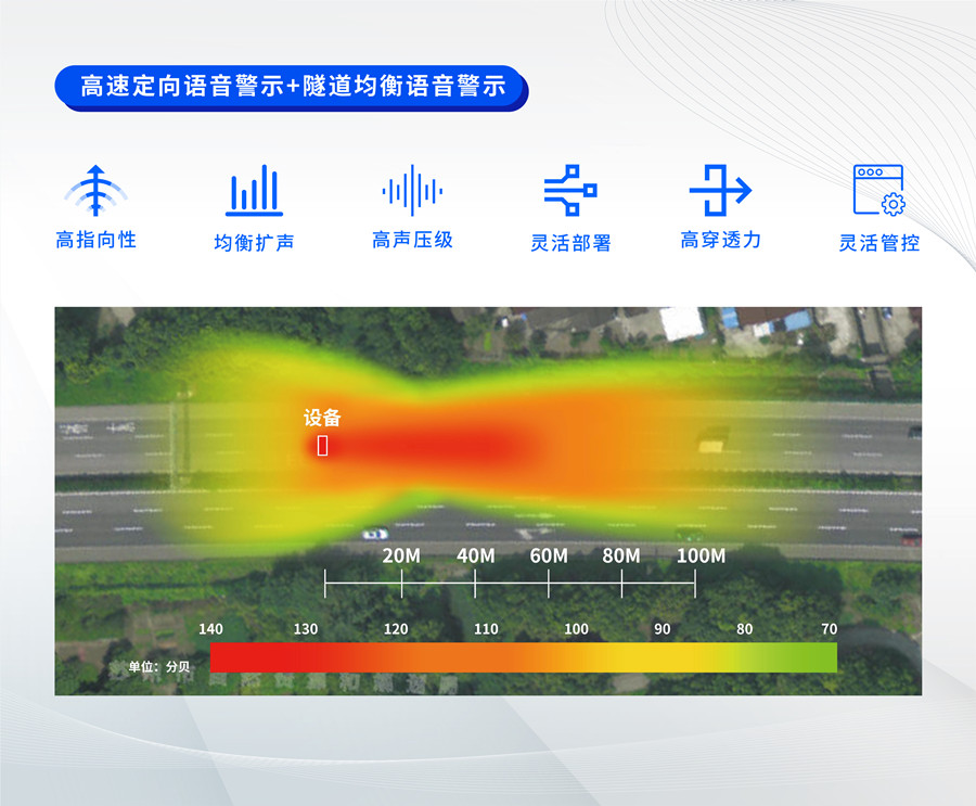 基于清聽聲學(xué)戶外定向聲算法升級,實現(xiàn)警示語音在復(fù)雜多變的戶外交通環(huán)境中沿指定方向、指定區(qū)域清晰傳播,不對反方向車道造成噪音污染,高聲壓級可穿透車玻璃,使司機提高警惕,防止司機因發(fā)呆、犯困、精神不集中而引發(fā)事故;實時播報資訊和現(xiàn)場調(diào)度信息,及時提醒司機,輔助司機提前做好應(yīng)變準(zhǔn)備,及時規(guī)劃行車路線,有效降低道路擁堵、事故及死亡發(fā)生幾率。
