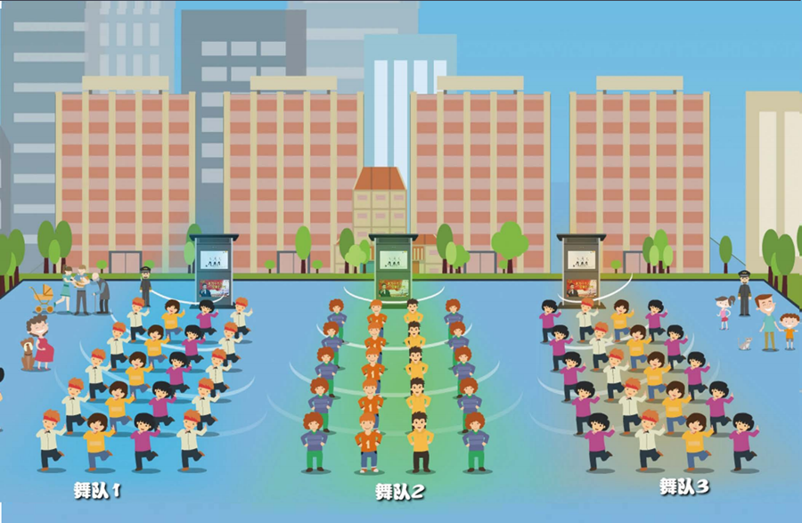 智慧舞場系統(tǒng)通過集成領(lǐng)先的定向發(fā)聲技術(shù),實現(xiàn)設(shè)備發(fā)出的聲音被集中在固定區(qū)域傳播,超出范圍后,聲音大幅衰減至環(huán)保值,有效解決群眾健身活動引發(fā)的各種噪音擾民難題。