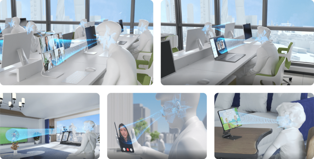 如今,折疊輕薄、可變形的柔韌顯示屏已成為顯示面板市場(chǎng)的一大流行趨勢(shì),但目前仍面臨的挑戰(zhàn)是如何在可折疊、輕薄的顯示屏上放置音響?如何讓整個(gè)顯示屏成為音響?集成Focusound Screen™利用屏幕本身作為發(fā)聲單元,營(yíng)造超越整個(gè)屏幕的全域音效,實(shí)現(xiàn)“音畫(huà)合一”,提供360°全環(huán)繞沉浸式音效體驗(yàn),可廣泛應(yīng)用于筆記本電腦、電競(jìng)顯示、會(huì)議系統(tǒng)等,私域聲場(chǎng)和空間音效的打造,賦予顯示產(chǎn)品基于終端場(chǎng)景的創(chuàng)新價(jià)值,給用戶帶來(lái)視聽(tīng)一體的極致體驗(yàn),從場(chǎng)景痛點(diǎn)出發(fā),讓視聽(tīng)體驗(yàn)更個(gè)性化、智能化、隱私化。