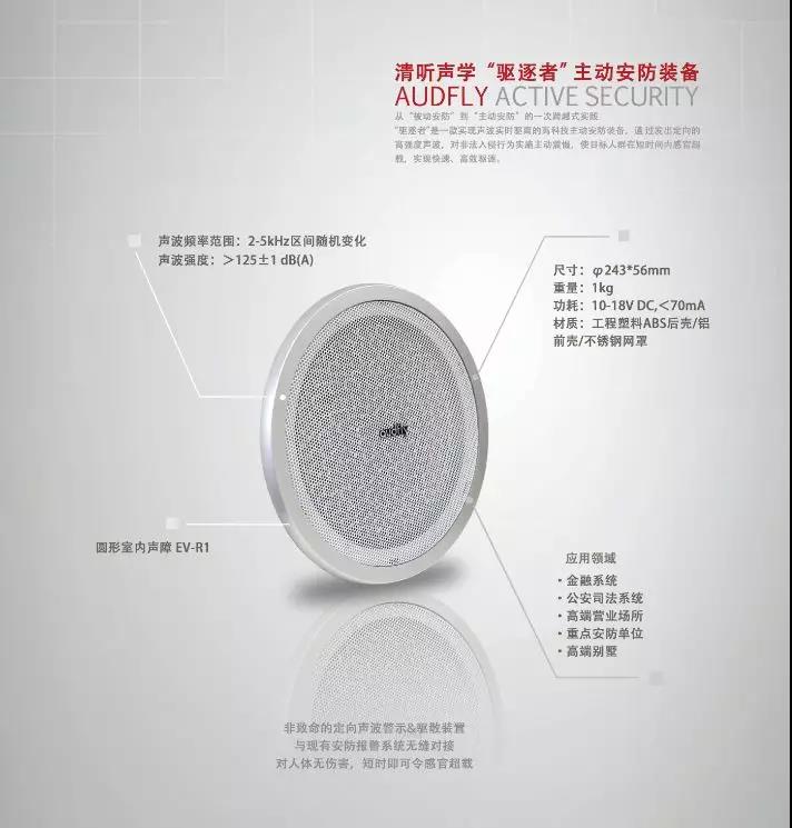 驅(qū)逐者主動安防裝置作為科技型聲學(xué)創(chuàng)新安防“武器”,堅持“不傷害人體健康”的原則,以高科技手段為銀行安防提供新思路。