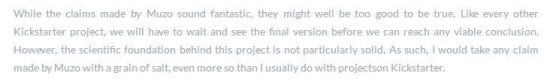 有外國網友評價:Muzo這個產品申明太好了,以至于好的不太真實。同時他還覺得這個項目背后的科學基礎并不堅實。