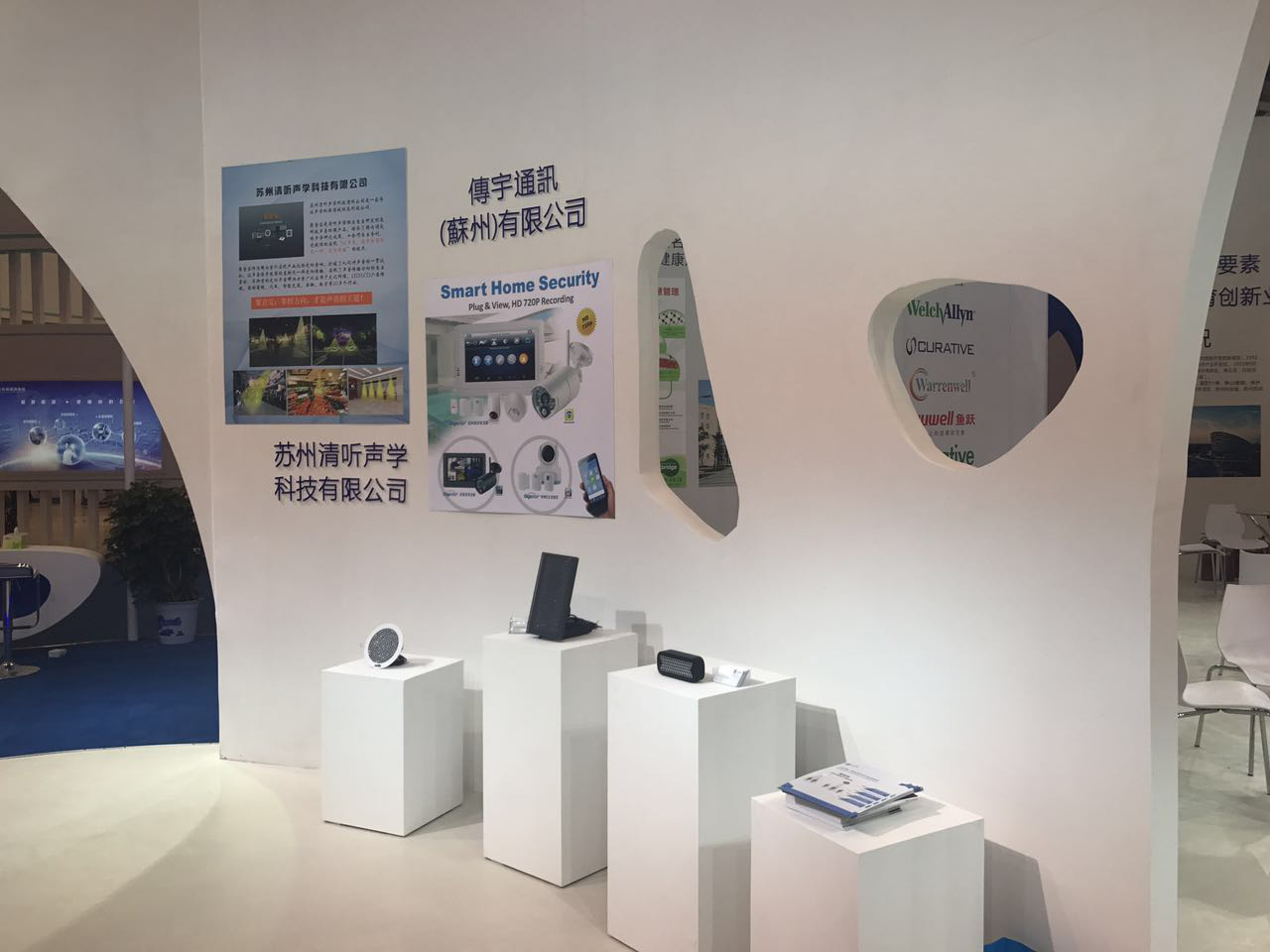 此次,清聽聲學隨蘇州高新區科技局出席了電博會,并攜多款其自主研發的定向音箱聚音寶現身蘇州高新區展區。