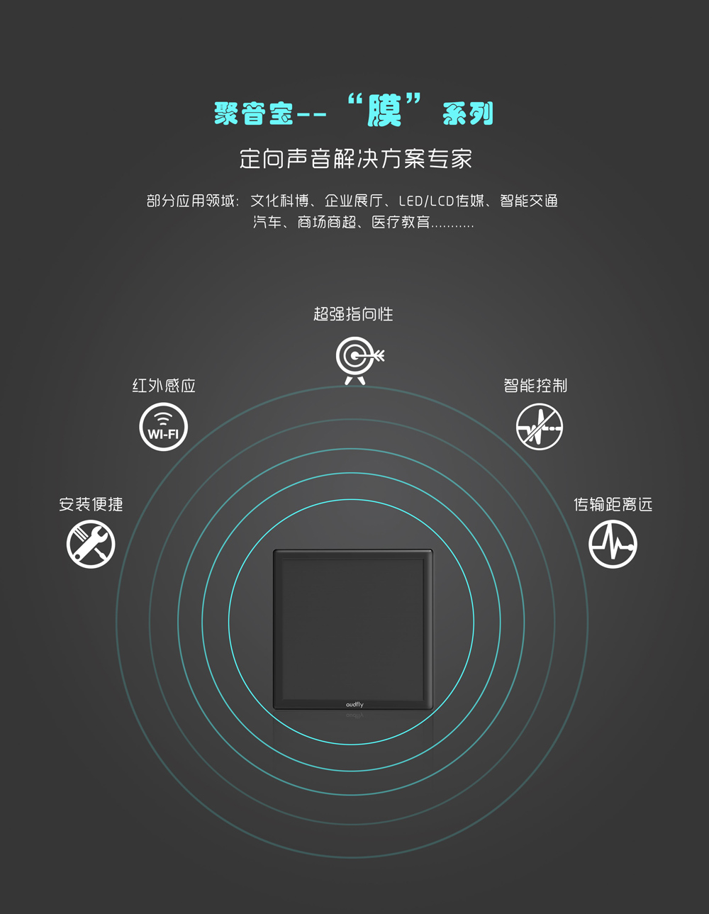作為國內聲學環保領域的領導者,清聽聲學集中資源打造定向音響聚音寶品牌,自去年6月份正式發布以來,已廣泛應用于文化科博、企業展廳、LED/LCD互動傳媒、汽車、智能交通、商場商超、醫療教育等20多個行業,帶來了顛覆性的變革。