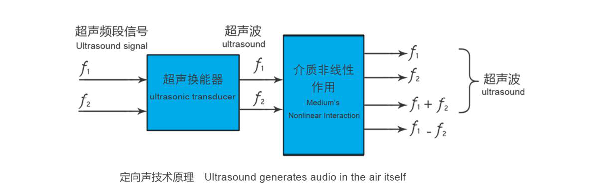 定向音箱是融合了定向聲技術(shù)的聲學(xué)創(chuàng)新應(yīng)用產(chǎn)物。基于定向聲技術(shù)原理,將低頻聲音信號(hào)搭載于指向性很強(qiáng)的高頻信號(hào)上,經(jīng)過(guò)放大投射到空氣中,根據(jù)聲音在空氣中的傳播特性,高頻信號(hào)會(huì)被迅速過(guò)濾掉,而高頻信號(hào)上的可聽聲信號(hào)會(huì)自然濾出,實(shí)現(xiàn)聲音的定向傳播。與此同時(shí),定向聲技術(shù)會(huì)把聲波控制在特定區(qū)域內(nèi)傳播,在這個(gè)區(qū)域內(nèi)的聲波很強(qiáng),而在這個(gè)區(qū)域外的聲波會(huì)逐漸減弱,甚至不易被人耳識(shí)別。