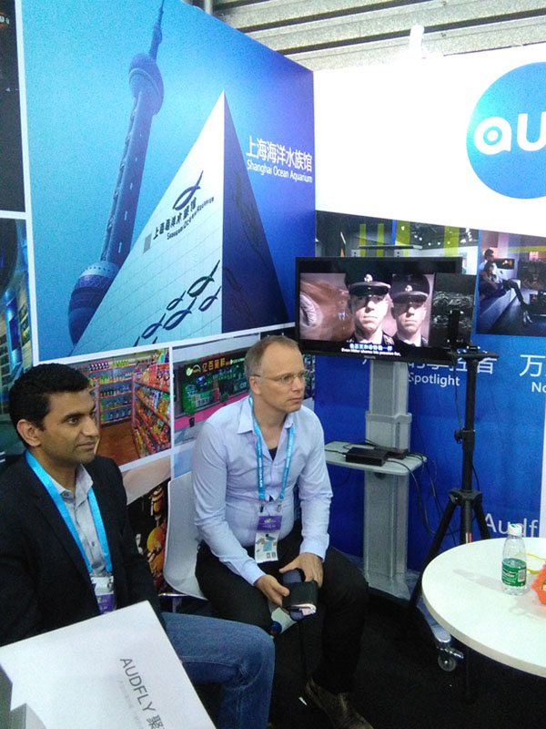 參觀者向我們工作人員咨詢有關聚音寶的各種細節